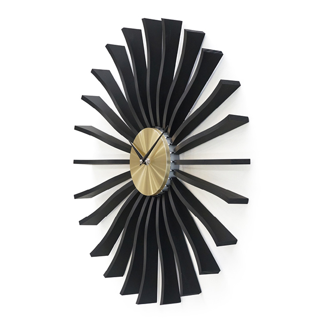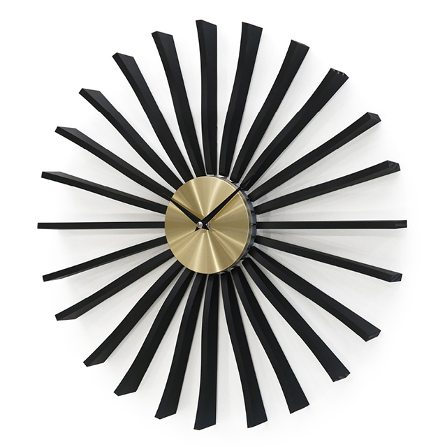 正規品 ジョージ ネルソン クロック GN001MB George Nelson アナログ ゴールド ◆ジョージ・ネルソンは1908年にコネチカット州ハートフォードで生まれ。1931年には23歳でイエール大学の芸術学士号を取得し、1932年奨学金を得てローマのアメリカン・アカデミーに留学。同年に建築部門のローマ賞受賞した。ハーマンミラー社のデザインディレクターに就任し、チャールズ&レイ・イームズ夫妻に同社に招聘するなど辣腕を奮う。自身も代表作プラットフォーム・ベンチ(ネルソンベンチ)、ココナッツチェアを発表。ハーマン・ミラー社の重要な家具デザインをいくつか手がけました。 繊細で軽やかなデザインの掛け時計〜フラッタークロックのブラックカラー。