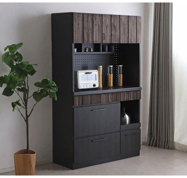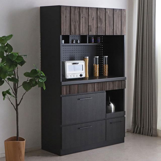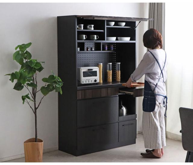 日本製 キッチンボード アカシア無垢材 幅104 高さ180 板扉上台×引出カウンター レセ RESE 105KB C 引き出し 扉 スライド棚 食器棚 おしゃれ(代引不可)【送料無料】
