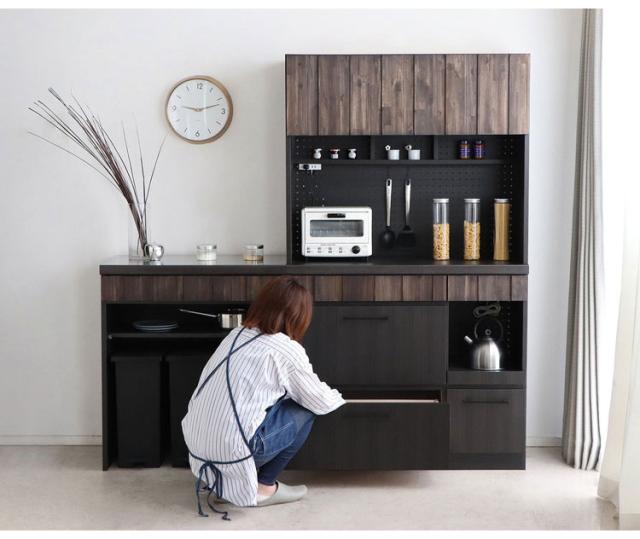 キッチンボード 板扉上台×ごみ箱上ラックタイプ