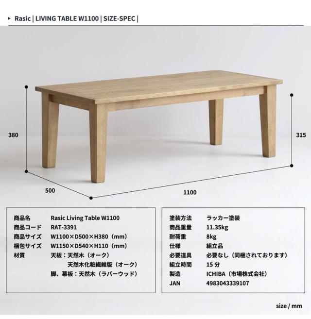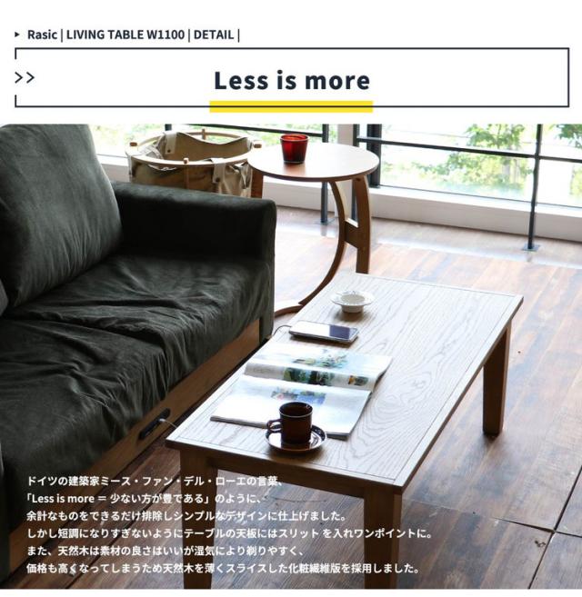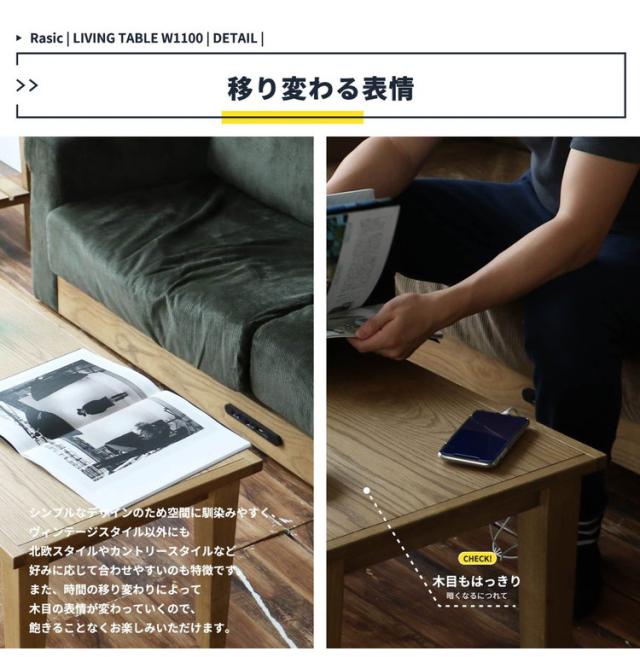 綺麗すぎない、粗さも含めて素材そのものの味わいを活かしたRasicシリーズ。どこか懐かしさを感じるソフトヴィンテージテイストに仕上げた、お部屋に馴染みやすいLiving Table です。
