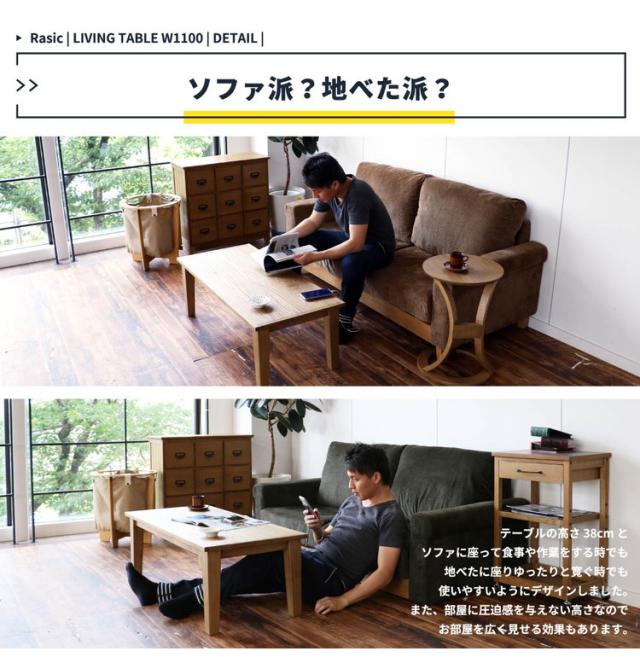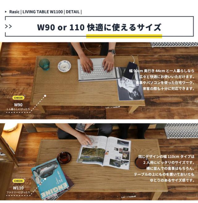 センターテーブル 幅110cm 天然木 おしゃれ 北欧 ナチュラル リビングテーブル ローテーブル 座卓 木製 木目 ウッドテーブル 居間 机 食卓 一人暮らし 新生活(代引不可)【送料無料】