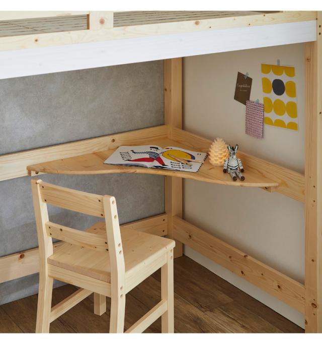 限られたスペースを有効活用可能なコーナーデスク付きロフトベッド!