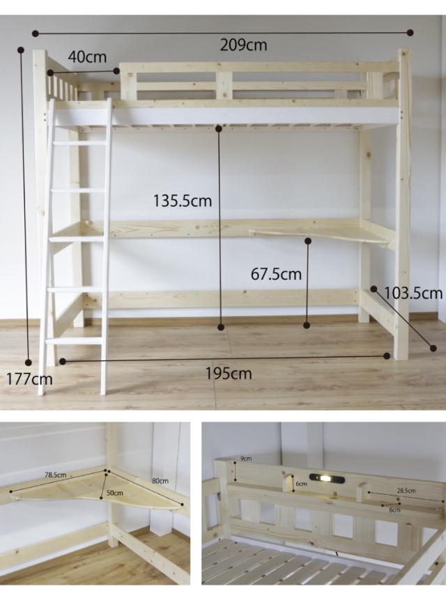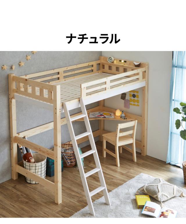 コーナーデスク付きロフトベッド、ロフトベッド、ハイタイプ、机付き、シングル、システムベッド、すのこベッド、天然木、デスク付き、木製、ナチュラル、シンプル、可愛い、子ども、寮、ゲストハウス、民泊、社宅、子供部屋、ベッド、ベッドフレーム、寝具、シングルベッド