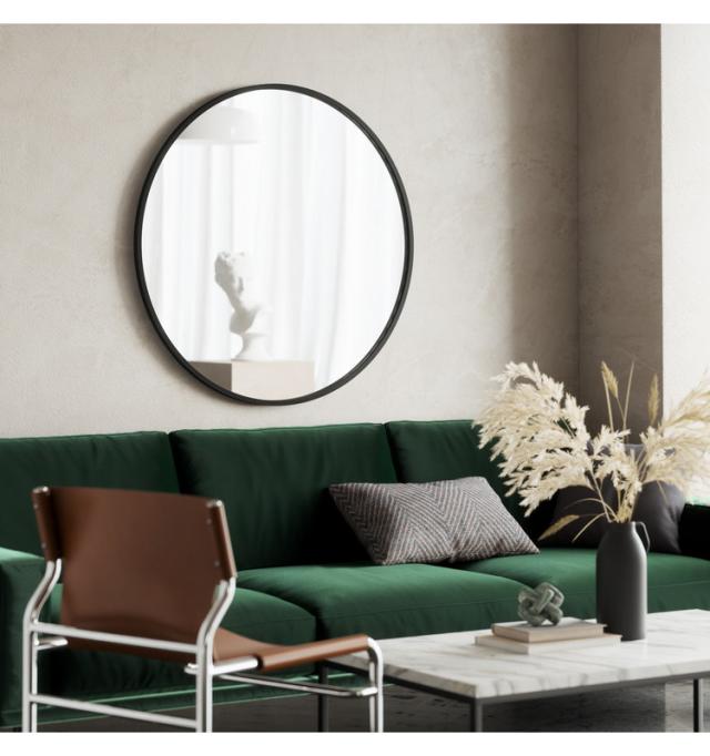 ハブ ミラーは、入り口、洗面所、リビングルーム、廊下などの人出入りが多い場所に最適な、大きな円形のミラーです。