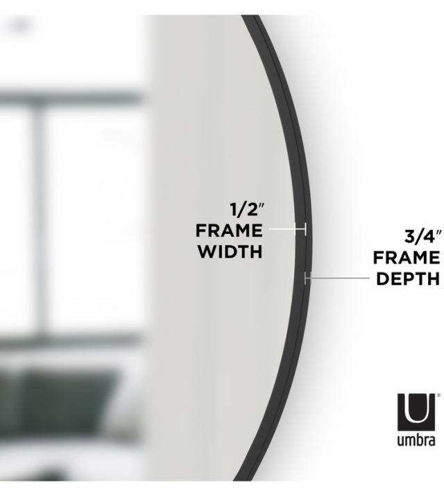 ラバーフレーム:ハブのラバーフレームは、この大きなウォールミラーの外観を引き立てるだけでなく、防護バンパーとしても機能し、エントランスの様な人通りの多い場所に最適です。