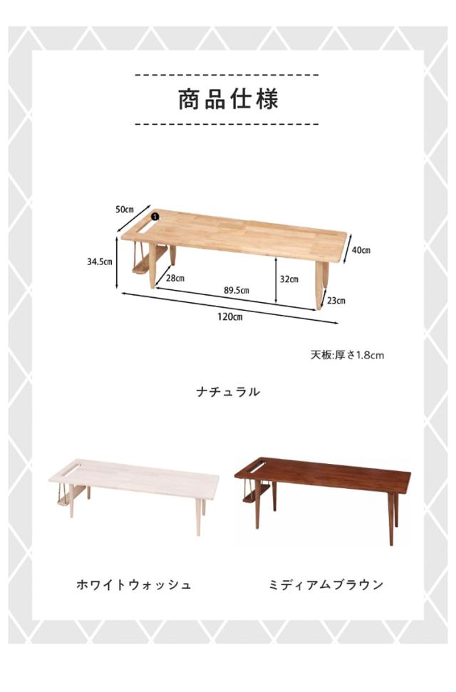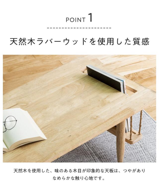 テーブル ローテーブル マガジンラック付き 棚付き センターテーブル 120×50cm 天然木 北欧 木製 おしゃれ かわいい コーヒーテーブル(代引不可)【送料無料】