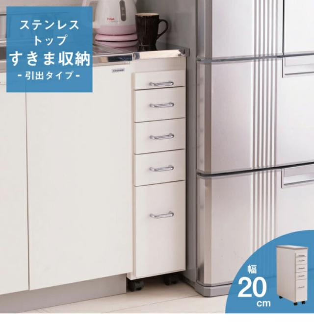 日本製 完成品 ステンレスキッチンワゴン 幅20cm 引出タイプ キッチン収納 隙間収納 国産 キャスター付き スライドテーブル付き 隙間収納 すき間収納 キッチン 収納 キッチン収納 マルチワゴン(代引不可)【送料無料】
