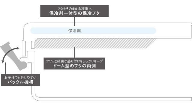 蓋の内部に保冷剤が封入されており、蓋ごと冷凍庫で凍らせることができます。