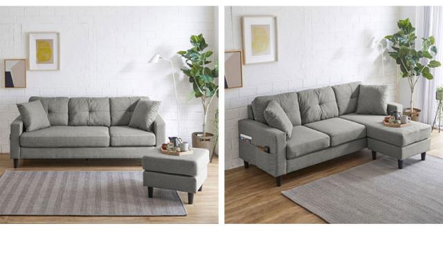 カウチソファ 幅188cm 3人掛け A4対応 サイドポケット付き おしゃれ 北欧 シンプル 肘あり 肘置き リビングソファー 新生活 収納 高級(代引不可)【送料無料】