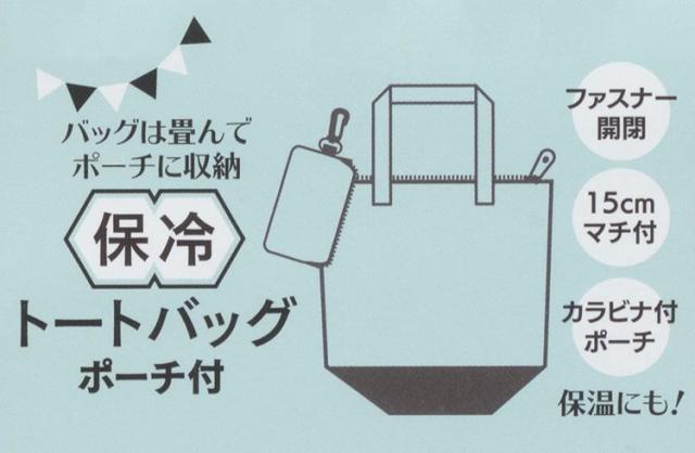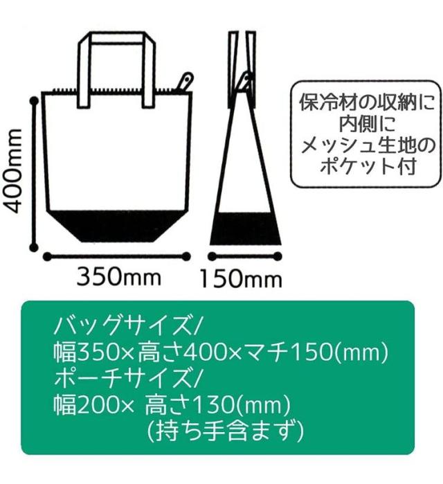 食料品のお買い物やレジャーなどの行楽に便利なポーチ付き保冷トートバッグ♪