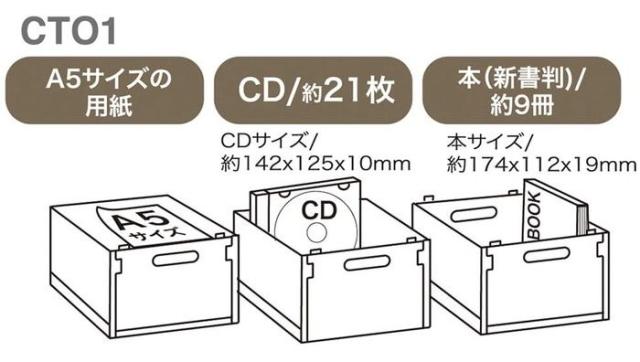 A5サイズの用紙、CDが約21枚、本(新書判)が約9冊入るサイズです。