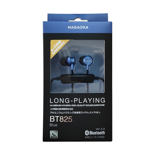 NAGAOKA 長時間連続再生アルミニウムハウジング高音質Bluetoothワイヤレスイヤホン ブルー BT825BL(代引不可)