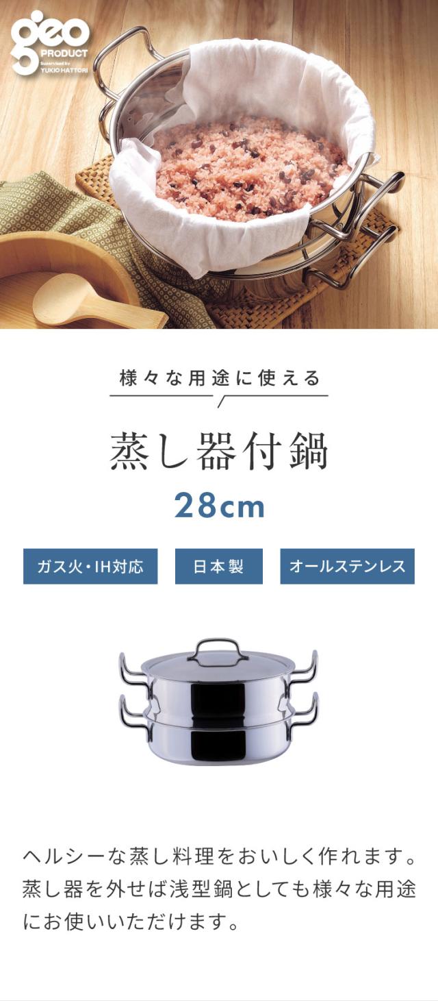 ジオ・プロダクト 日本製 蒸し器付鍋 28cm GEO-28M ガス火・IH対応 オーブン可 GEO ジオ 服部幸應先生 国産 宮崎製作所 Miyaco ジオプロダクト【送料無料】