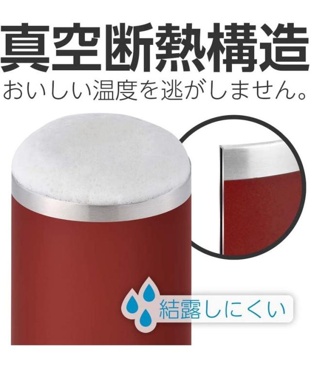 真空断熱構造で熱が逃げにくく、飲み物の温度が長持ち。