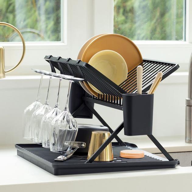 ブラバンシア フォーダブル ディッシュドライングラック L ダークグレイ 水切りラック 水切り トレー 水切りトレー 皿 キッチン 洗い物 干し スタンド ディッシュスタンド 皿置き【送料無料】