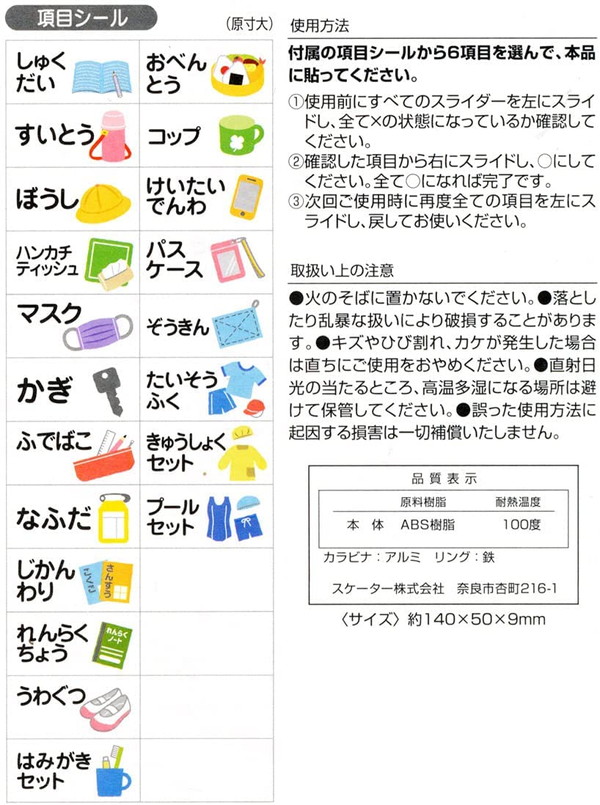 お子様がひとつひとつ項目をチェックしてスライドして確認♪