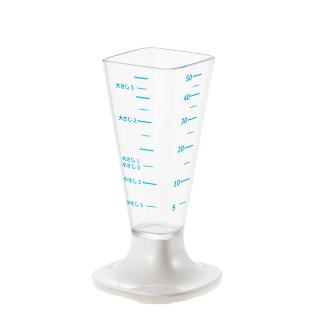 置いたまま計量できるので両手が使えます。目盛りの間隔が広く、量りやすい工夫がされています。哺乳瓶などにも使われている安心の素材。食洗機にも対応しています。