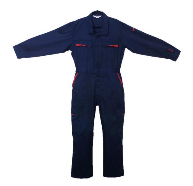 ●カラーはおしゃれなネイビーとスタイリッシュなブラックの2色展開で、赤の差し色がとても映えるつなぎ服です。