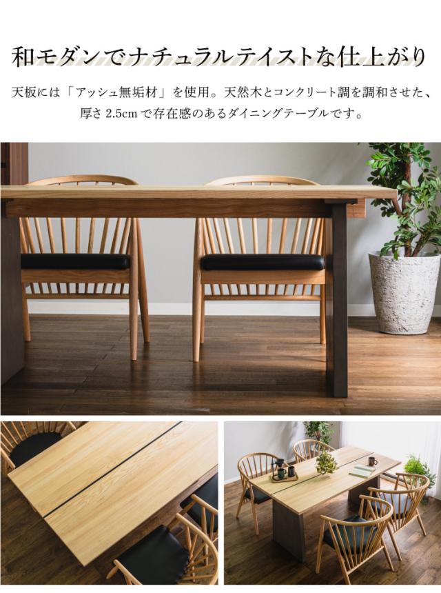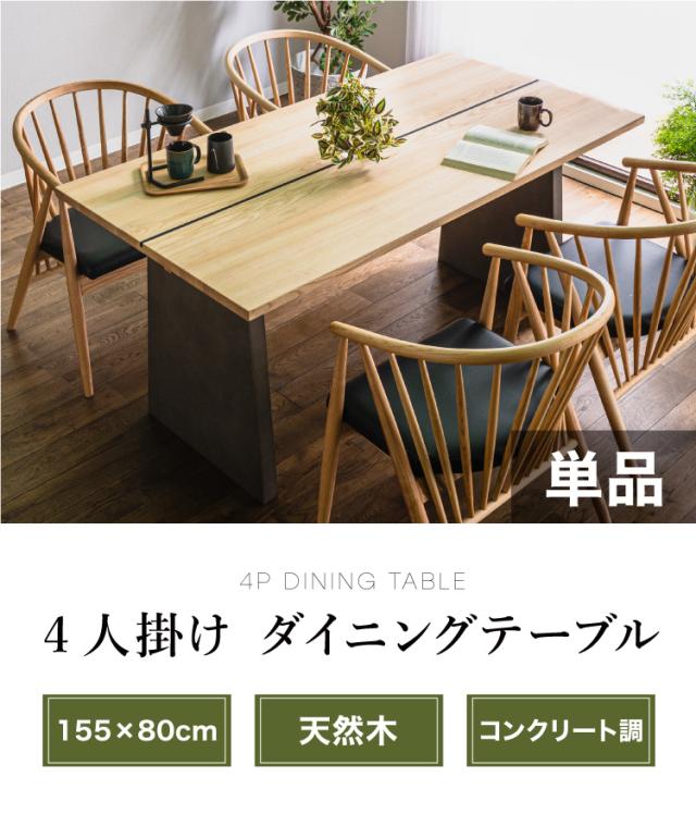 ダイニングテーブル 単品 4人掛け 155×80 天然木 アッシュ 無垢材 コンクリート調 木製 長方形 角型 和モダン ナチュラル 和風 おしゃれ シンプル ブラック 木目 組立品 食卓 テーブル アッシュ材 (代引不可)【送料無料】