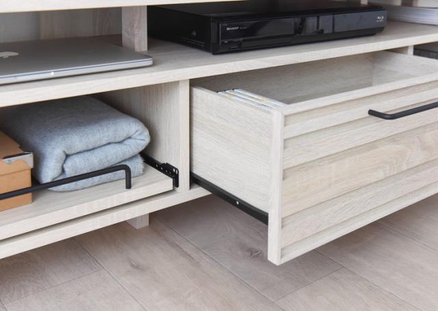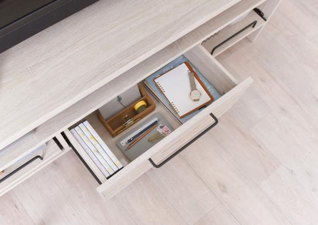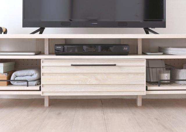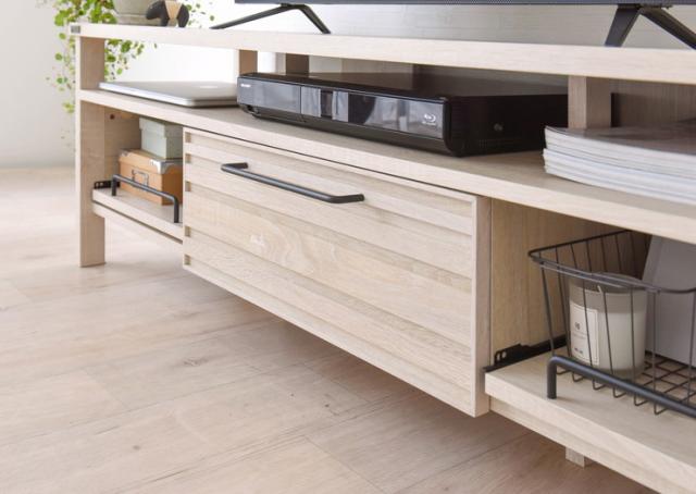 3種類の収納で、テレビ周りをすっきりと美しく。