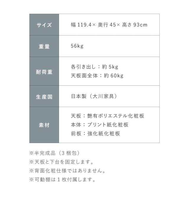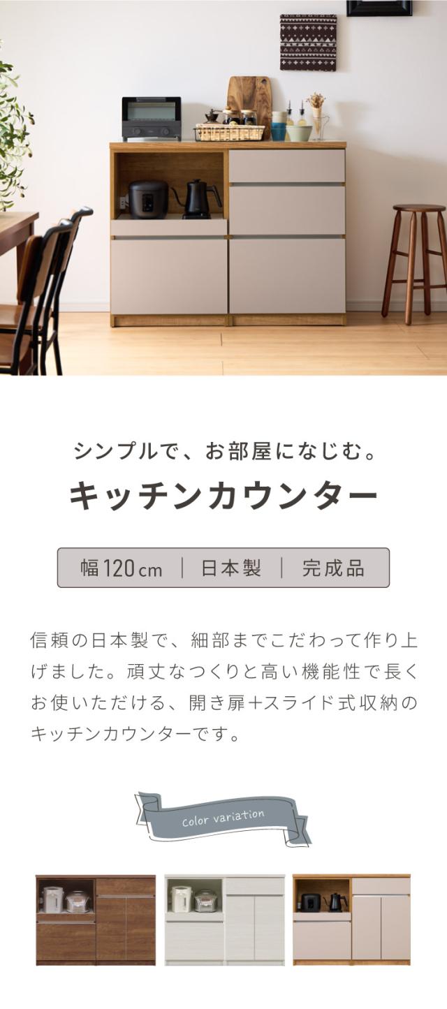 キッチンカウンター 120 幅120 高さ93 開き扉 オープンスライド 完成品 国産 開梱設置無料 日本製 レンジ台 カウンター テーブル 食器棚 キッチンボード 引き出し(代引不可)【送料無料】