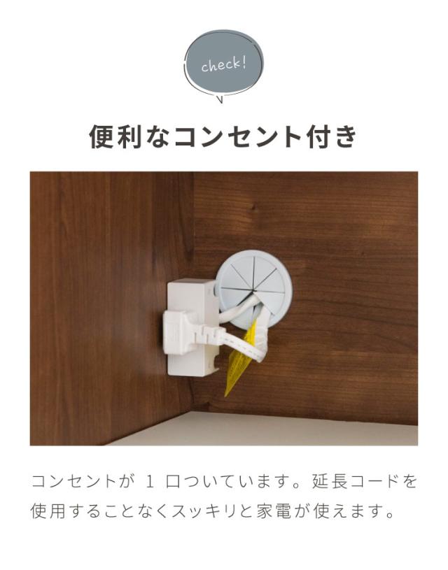 1口コンセント付きで炊飯器やケトルなどの収納に使用できます!