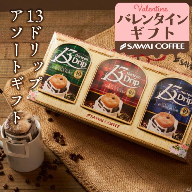 バレンタイン 13Drip 福袋 3種 30杯分 個包装 飲み比べ セット 濃いめ プチギフト おしゃれ マグカップ 13g ドリップコーヒー 送料無料 オリジナル クラシック ヨーロピアン 澤井珈琲 冬ギフト