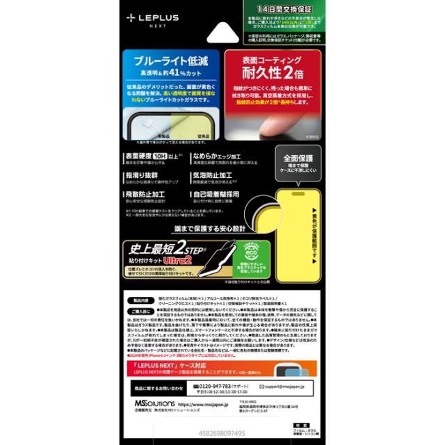 【14日間保証】【貼り付けキットUltra2付属】 超硬度10H表面強化ガラス/端まで保護する全面保護/指紋防止効果2倍持続/黄色くならないブルーライトカット/ブルーライトを約41%カット/アルコール洗浄布・ホコリ除去ラベル・クリーニングクロス付属