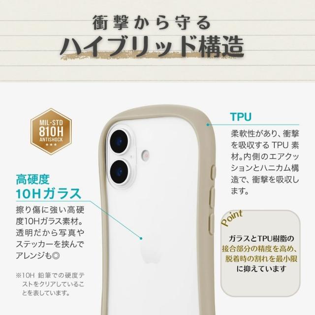【60日間保証】【耐衝撃】 衝撃を吸収・分散するハニカム構造のTPUと、高硬度10Hで傷に強いガラスのハイブリッドケース/側面全体がなめらかにラウンドした持ちやすいデザイン/レンズ周りを高く設計/ボタンまで保護/ストラップホール搭載(側面)/写真やステッカーを使ったアレンジも楽しめる背面クリア仕様/ショルダーストラップの取り付けに最適な「挟み込みシート」付属。