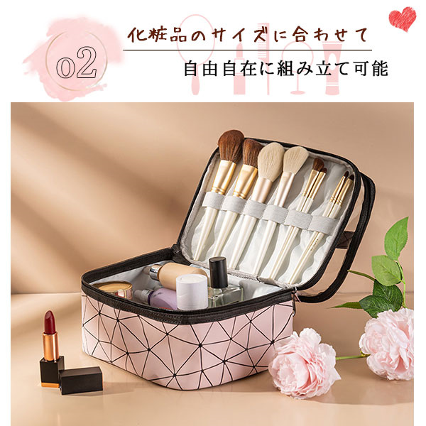 ◎仕切りを自由にレイアウト出来る大容量でたっぷり収納できるメイクポーチ