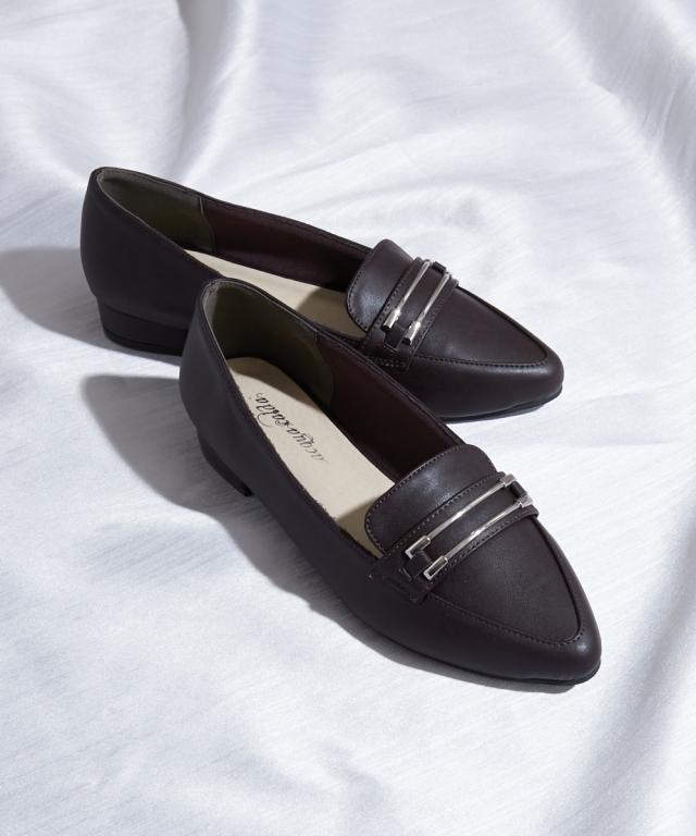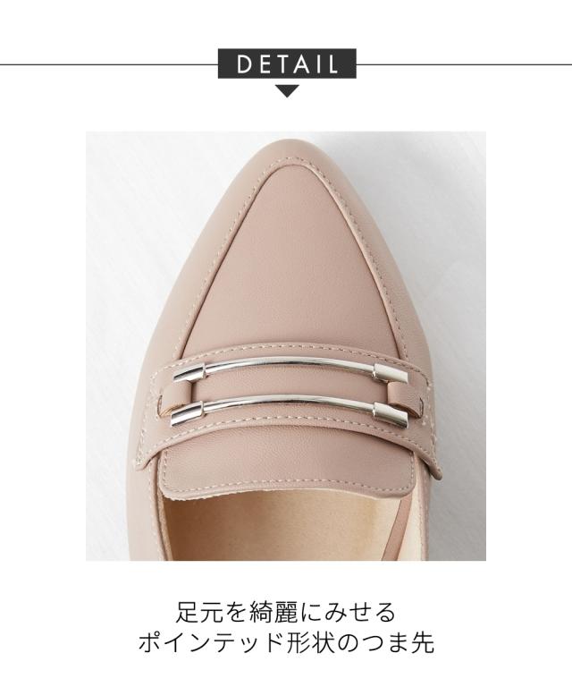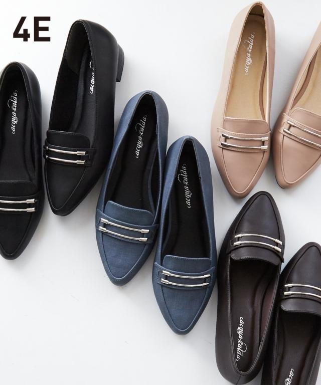 【ゆったり幅広】ビット付ポインテッドトゥパンプス(低反発中敷)(ワイズ4E)