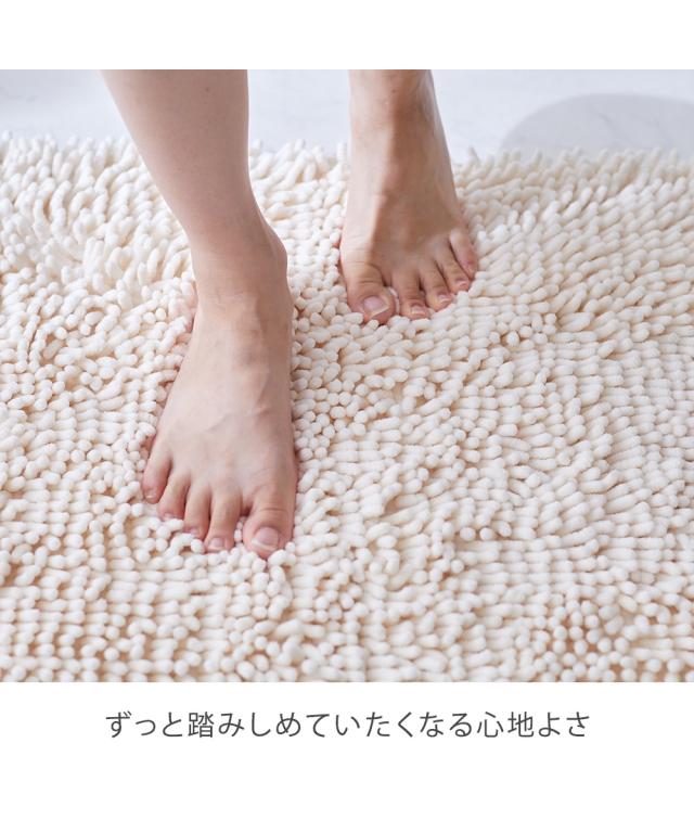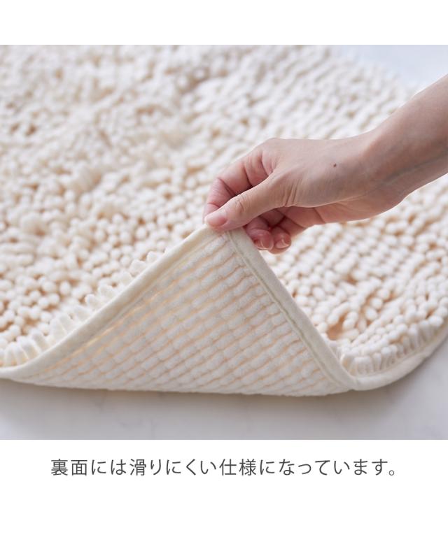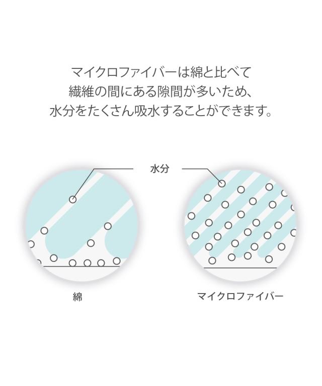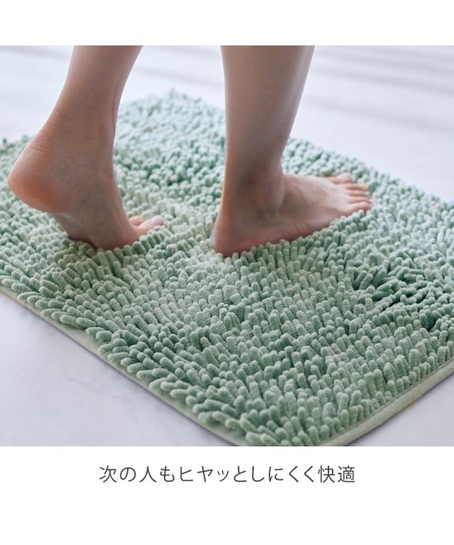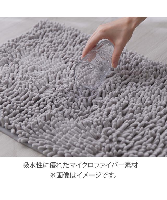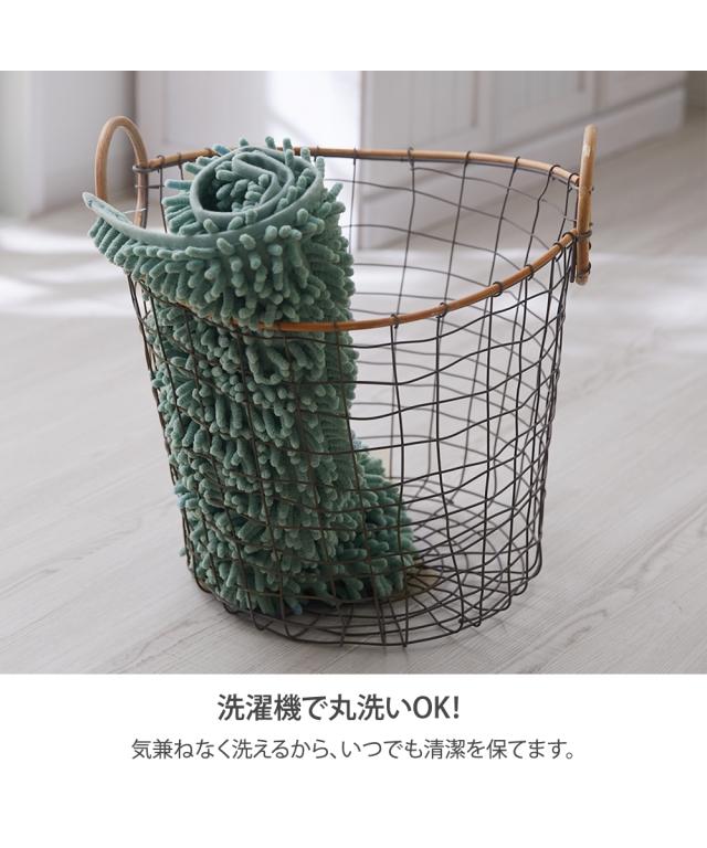 マイクロファイバーの超極細繊維で抜群の吸水性。裏面すべりにくい加工でフローリングの床でもすべりにくい。