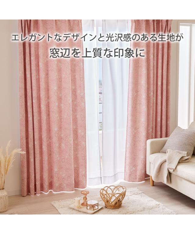 【カーテンセット】遮光・形態安定カーテン&遮像・遮熱・UVカット・ミラーレース4枚セット|エレガントフラワー