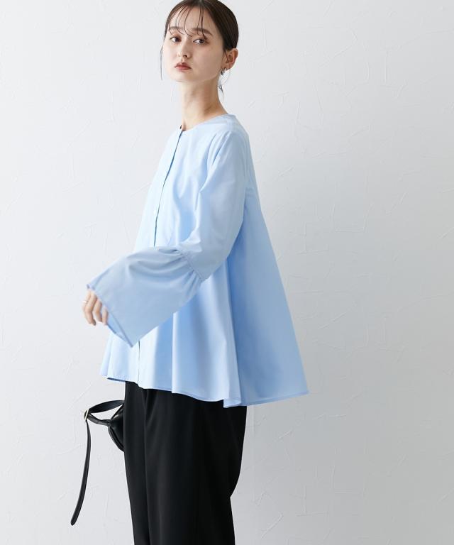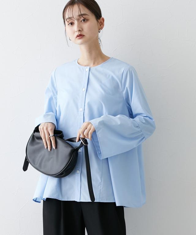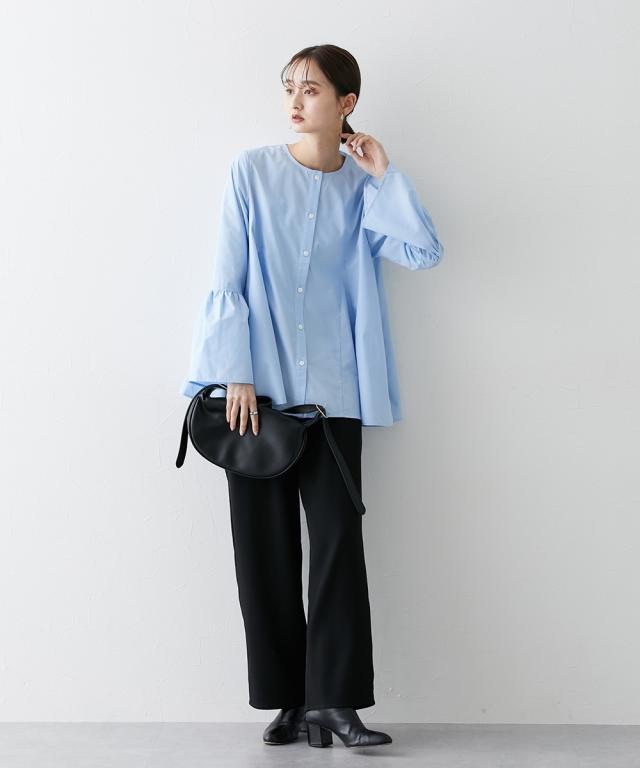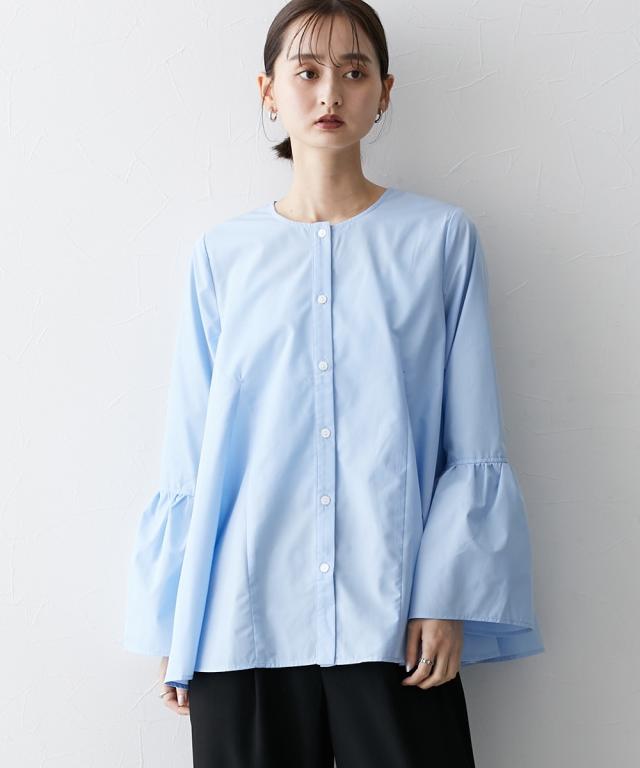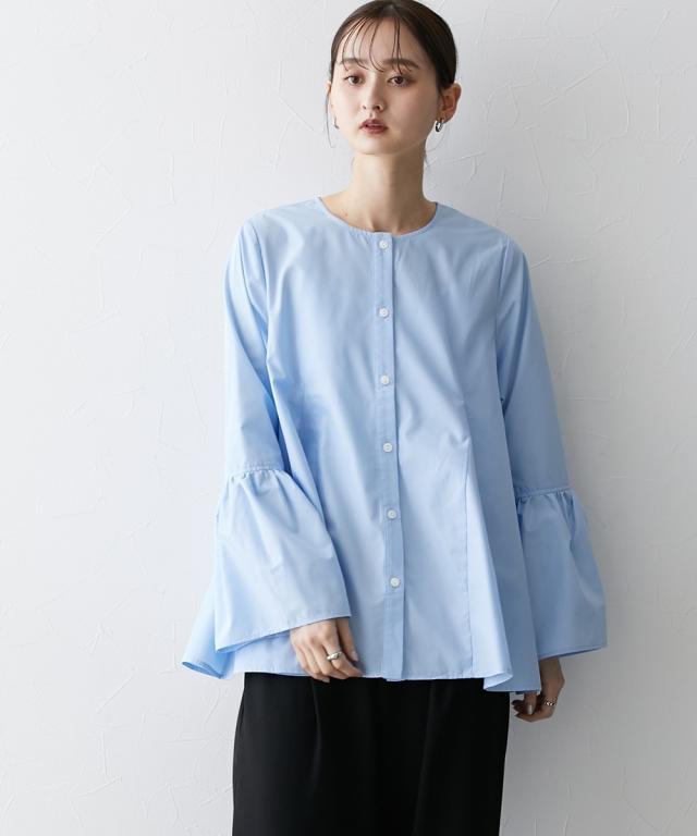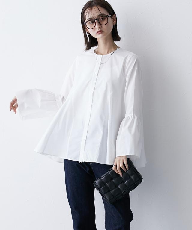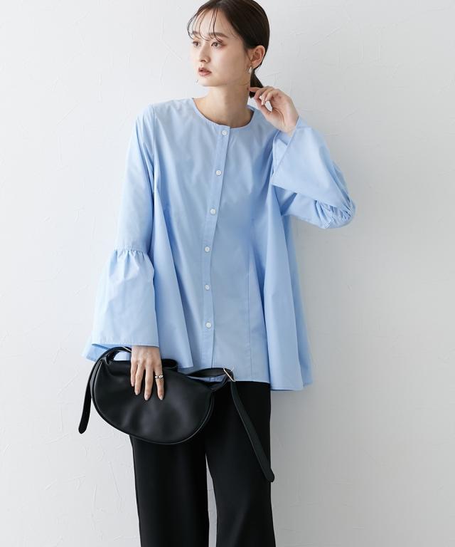 シルエットがポイント ボリュームたっぷりブラウス ■デザイン ・お袖は切替デザインでボリューム感あり ・後ろと前サイドにも、切替を入れており、ふわっとボリューム感が出るようなデザインにしています ・前ボタン開き仕様なので、羽織ってシャツアウターにしても今季のおすすめ。 ■素材 ハリ感のある布帛素材です。 ■おすすめのスタイリング 袖も身頃もボリューム感があるフレアなデザインで、ボトムはタイトめがおすすめ ワイドパンツくらいであれば、太めのパンツでも相性は 暑い時期が長いですが、秋キブンを取り入れたい方は、シャツをアウター替わりにさっと羽織るコーデがおすすめ。 【Be praised】ーーー明日ちょっと褒められる服ーーー 大人トレンドを意識したこだわりのアイテムと着こなしでアナタの毎日に輝きを。 ただシンプルできれいなだけじゃ物足りない。 カジュアルすぎず、スタイリッシュで大人の品性を感じる着こなしに。 そんな、こなれたオシャレを楽しむ女性に寄り添う、 新鮮なリアルクローズをご提案します。