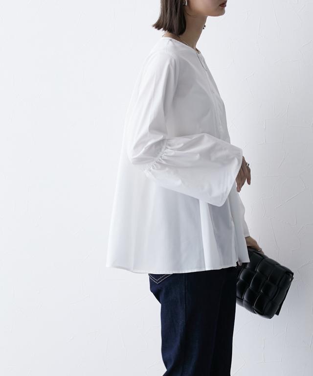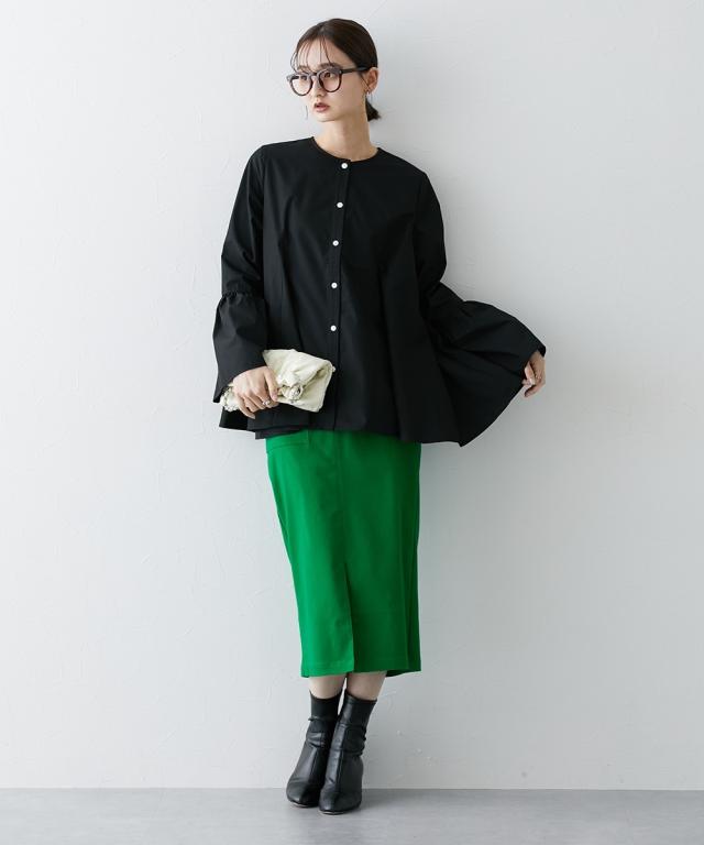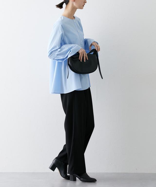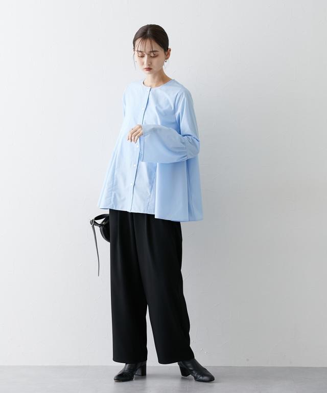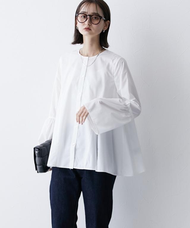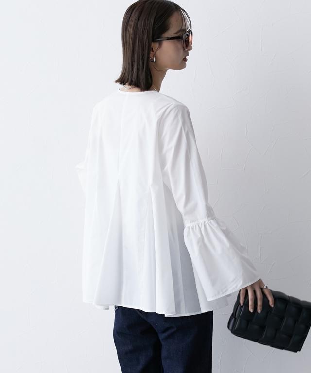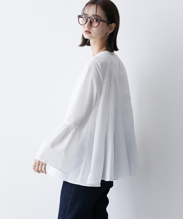 シルエットがポイント ボリュームたっぷりブラウス ■デザイン ・お袖は切替デザインでボリューム感あり ・後ろと前サイドにも、切替を入れており、ふわっとボリューム感が出るようなデザインにしています ・前ボタン開き仕様なので、羽織ってシャツアウターにしても今季のおすすめ。 ■素材 ハリ感のある布帛素材です。 ■おすすめのスタイリング 袖も身頃もボリューム感があるフレアなデザインで、ボトムはタイトめがおすすめ ワイドパンツくらいであれば、太めのパンツでも相性は 暑い時期が長いですが、秋キブンを取り入れたい方は、シャツをアウター替わりにさっと羽織るコーデがおすすめ。 【Be praised】ーーー明日ちょっと褒められる服ーーー 大人トレンドを意識したこだわりのアイテムと着こなしでアナタの毎日に輝きを。 ただシンプルできれいなだけじゃ物足りない。 カジュアルすぎず、スタイリッシュで大人の品性を感じる着こなしに。 そんな、こなれたオシャレを楽しむ女性に寄り添う、 新鮮なリアルクローズをご提案します。
