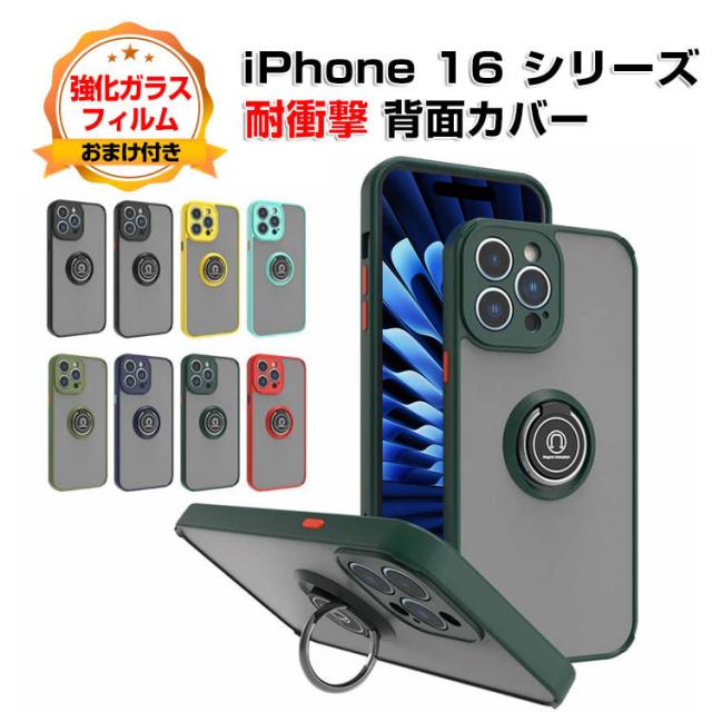商品名スマホケース iPhone 16 16 Plus 16 Pro 16 Pro Max ケース カバー CASE TPU+PC素材 衝撃防止 スタンド機能 リングブラケット付き 持ちやすい 衝撃防止 カッコいい おしゃれ 便利 実用 人気 指紋防止 耐衝撃カバー 背面カバー 強化ガラスフィルム おまけ付き