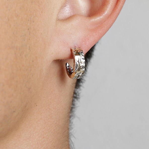 海外古物商から入手した紀元前‐1600年前くらいまでの希少なオールドコインより型取り製作したコインをスライスし金鑞で繋げ、ゴールドダスト加工を施した、ラグジュアリーなアンティーク感のあるフープ型のピアスです。古代ローマ‐古代北西インド(現パキスタン‐アフガニスタン)イスラーム王朝、クシャ?ナ朝などのコインの中の一枚から製作するアソート生産となります。金属アレルギーを起こしにくい(個人差があります)k18ゴールドポスト使用のピアスです。