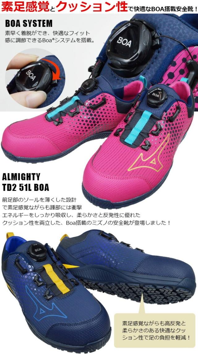 【限定カラー】ミズノ 安全靴 新作 スニーカー BOA搭載 オールマイティ MIZUNO ALMIGHTY TDII51L BOA F1GA2413 ローカット メンズ レディース ダイヤル式 セーフティシューズ プロテクティブスニーカーA種 耐滑 耐油 抗菌 防臭 衝撃吸収
