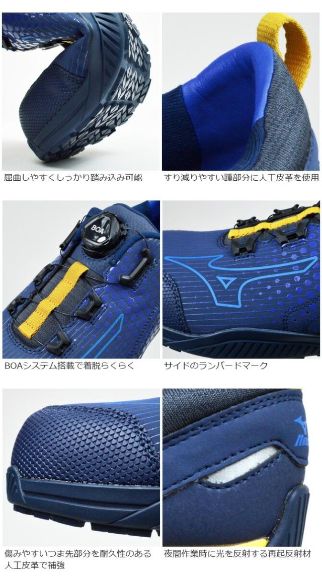 | ミズノのテクノロジーを駆使したワーキングシューズ「オールマイティー」のBoa搭載の限定カラーモデルです。 前足部のソールを薄くした設計で、踵部には衝撃エネルギーをしっかり吸収し、柔らかさと反発性に優れたミズノエナジーを搭載しており、クッション性と素足感覚を両立しています。 BOAシステム搭載ですので脱ぎ履きがしやすく、コンパクトかつ細やかな微調節が可能な「L6ダイヤル」によりフィット感を高めています。 アウトソールは油による劣化がしにくいラバーソールで耐滑性にも優れています。 一部に光を反射する再帰反射材を使用していますので夜間の作業でも安心です。 どんな現場でも快適で、ワンランク上のフィット感が体感できる、細部にもこだわり抜いたミズノ渾身のセーフティーシューズです。 【JSAA規格 A種 認定品】 | ||||||