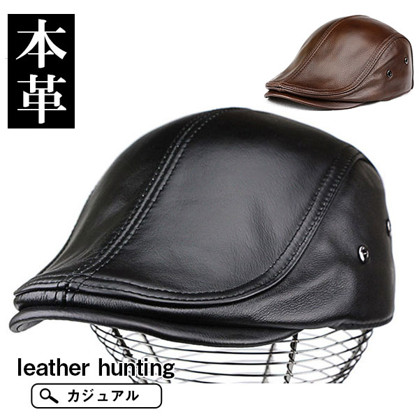 ポイント超超祭 ハンチング メンズ 帽子 本革 レディース レザーハンチング ニューヨークハット ブラック 春 夏 日除け帽子 大人 50代 60代 プレゼント