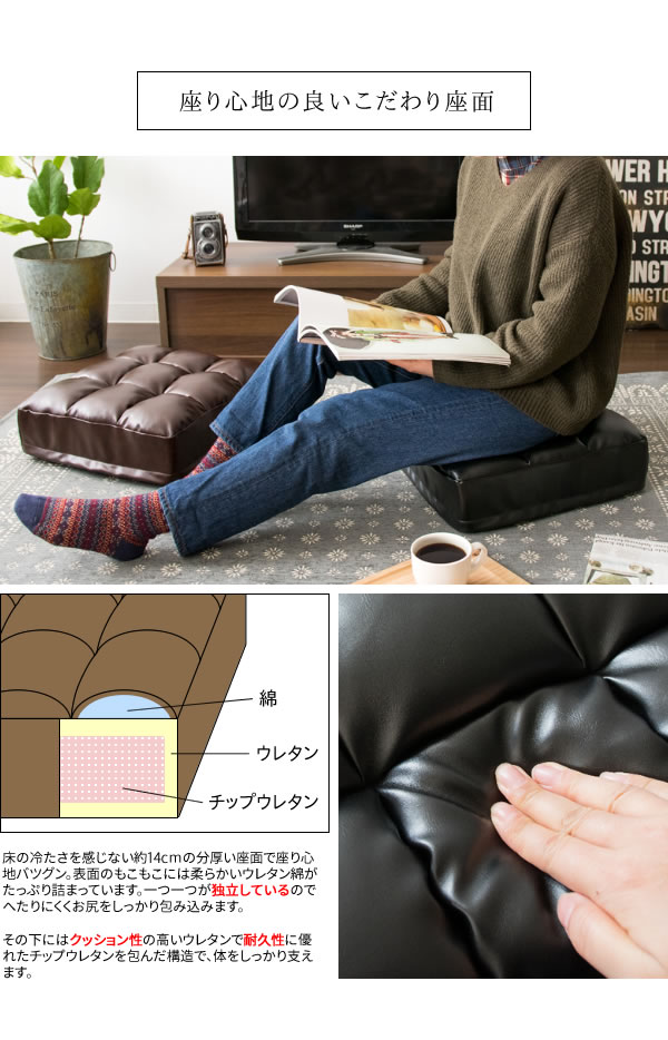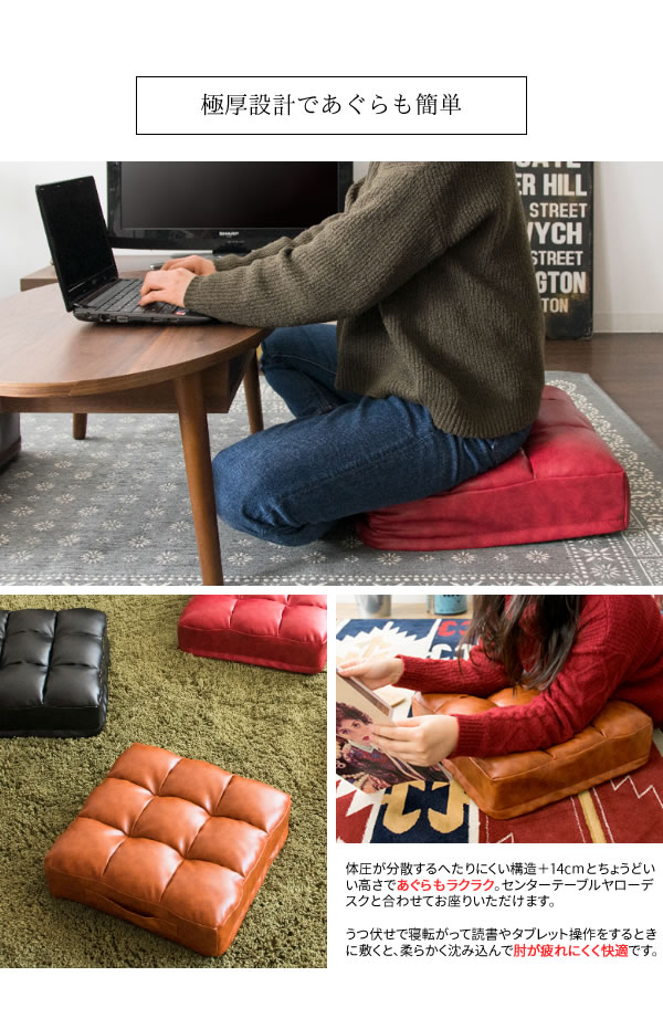 クッション 座布団 38x38cm 厚さ14cm レザークッション Abile(アビル) 4色対応 フロアクッション 座椅子 正方形 ざぶとん 極厚 合皮 ウレタン シートクッション おしゃれ 座面クッション 軽量 スツール まくら
