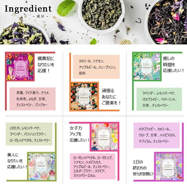 女性の毎日に寄り添うTEA フェム チアーズ ティーバッグ 全6種類×各1 (1.5g×2包入り)作りました! ![]() |