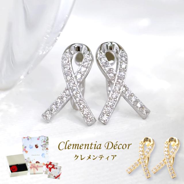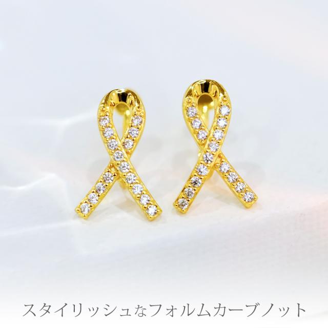 ジルコニアが煌めくリボンをくるりと一回転させたカーブノットは、リボンモチーフの中でも甘くなり過ぎずスタイリッシュに使えます。