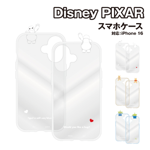 送料無料 ディズニー、ディズニー・ピクサーキャラクター/ フレームIIIIfitClear iPhone16対応ケース DNG-203 / ベイマックス くまのプーさん エイリアン