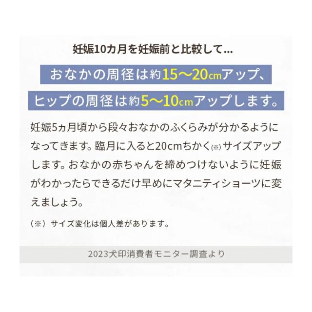 | サイズ | マタニティM(腹囲 78〜100cm、ヒップ 85〜98cm) マタニティL(腹囲 88〜110cm、ヒップ 90〜103cm) |