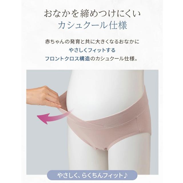 | 特徴 | らくちんショーツ 産前産後兼用 犬印本舗×くみっきー×モニターママ 共同開発インナー くみっきーの心地よさへの“こだわり” 犬印の消費者モニターママのリクエストに応えて美と健康の専門家でもあるくみっきーが マタニティショーツを共同プロデュース。 機能性とデザインを追求したママが心地いいと感じるショーツを企画。 デザイナーと一緒にミリ単位の調整を重ねてやっと理想のショーツにたどり着きました! 妊娠すると、どれくらいおなかは大きくなるの? 妊娠10カ月を妊娠前と比較して... おなかの周径は約15〜20cmアップ、ヒップの周径は約5〜10cmアップします。 妊娠5カ月頃からだんだんおなかのふくらみが分かるようになってきます。 臨月に入ると20cmちかく(※)サイズアップします。 おなかの赤ちゃんを締めつけないように妊娠がわかったらできるだけ早めに マタニティショーツに変えましょう。 (※)サイズ変化は個人差があります。 ・おなかを締めつけにくいカシュクール仕様 赤ちゃんの発育と共に大きくなるおなかにやさしくフィットする フロントクロス構造のカシュクール仕様。 伸縮性が高いので、妊娠中から出産後の体型変化のどちらにも程よくフィットします。 ・ウエストゴムを使用せず面でフィット ウエスト部分はゴムを使用せずに身生地を仕立てて「面」でやさしくフィット♪ サイズアップをしてもらくちんにはける仕様です。 ・お尻をすっぽり包む安心設計 妊娠中はヒップにも脂肪がついてサイズアップします。 前は浅めでも、後ろは深めのデザインでお尻をすっぽり覆って、安心感のあるはき心地です。 ・妊娠中も出産後もスタイルよく♪ 足ぐりのカットやカシュクール幅の調節により足長でスタイルよく見えるデザインに仕上げています。 ・敏感な時期に合わせて変化をわかりやすく 産前〜産後に、おりものなどの変化がわかりやすいように、 クロッチ部分は綿100%の白生地を袋縫いしています。 ・産前〜産後、着用OK 妊娠初期〜臨月、そして出産後もほどよくフィットします。 ※出産後、すぐには妊娠前の腹囲に戻らないため 引き続きマタニティショーツの着用をおすすめします。 肌が敏感になりやすい時期に肌あたりのやさしいコットンリッチ(綿95%)。 ※生地に伸縮性をもたせるため、ポリウレタン(5%)を配合しています。 |