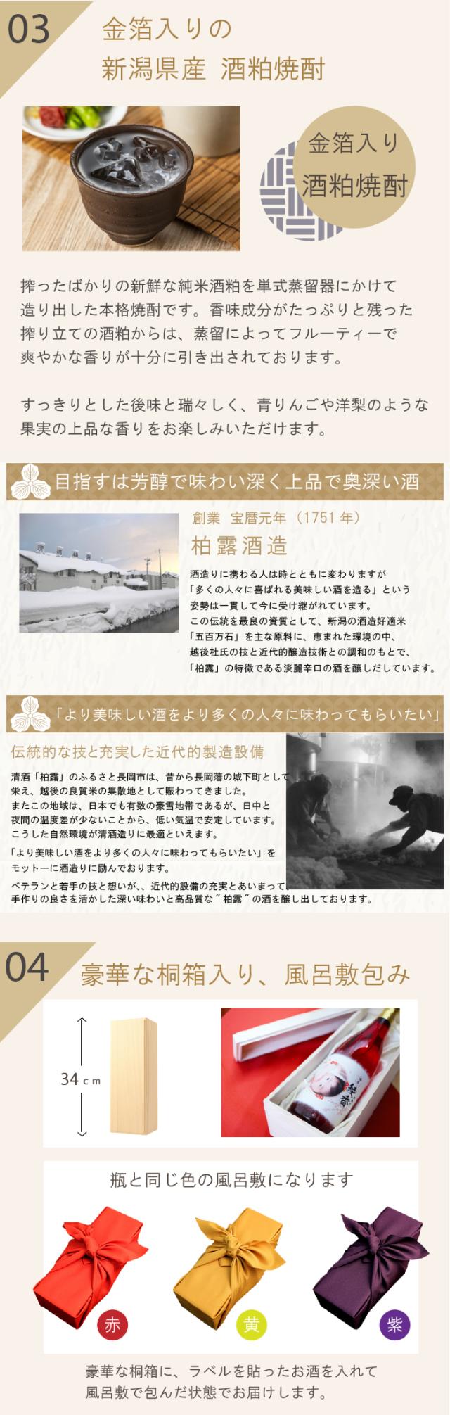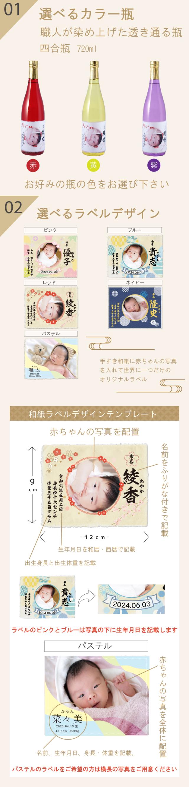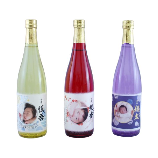 選べるカラー瓶!赤ちゃんの写真入り!世界でひとつだけオリジナルラベルの名入れ酒!新潟県産の純米酒粕焼酎に金箔を入れお祝いにピッタリの日本酒!