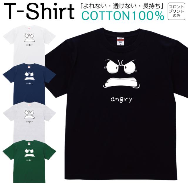 Tシャツ メンズ レディース カートゥーン フェイス 怒り イラスト ジュニア キッズ 半袖 コットン100% 綿100% 100サイズ 120サイズ XXS XS S M L XL 5.6オンス zakka043-0221
