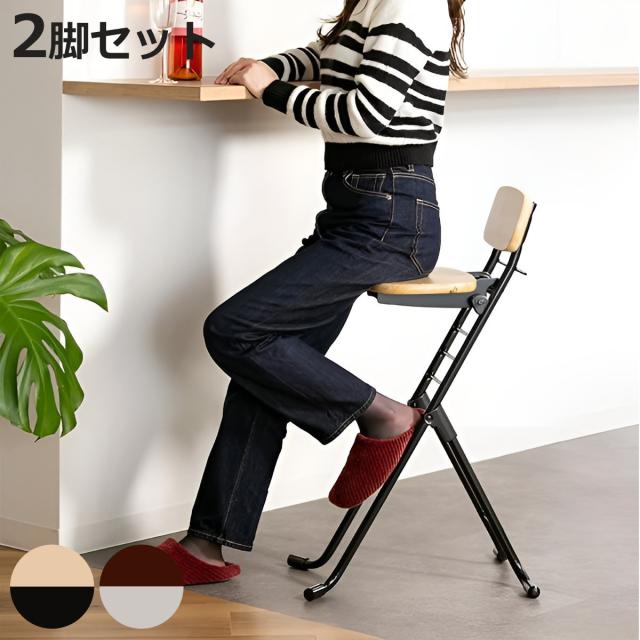 折りたたみ椅子 同色2脚セット 高さ調節 6段階調節 リリィチェア 木製 スチール ( カウンターチェア ハイチェア キッチン サブチェア 折りたたみ チェア 椅子 日本製 完成品 )