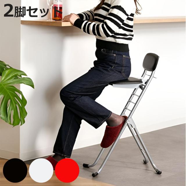 折りたたみ椅子 同色2脚セット 高さ調節 6段階調節 クッションタイプ リリィチェア シルバーフレーム ( カウンターチェア ハイチェア キッチン サブチェア 折りたたみ チェア 椅子 日本製 完成品 )